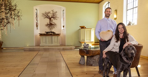 Wir von der Schönhalde machen von Herzen Tierbestattungen mit Leib und Seele. Es ist unsere Berufung, nicht nur der Beruf. Dabei gehen wir jetzt neue Wege und geben der letzten Reise einen ganz besonderen Raum. Die Tierbestattung in der Kirche gab es bis heute noch nirgendwo.
